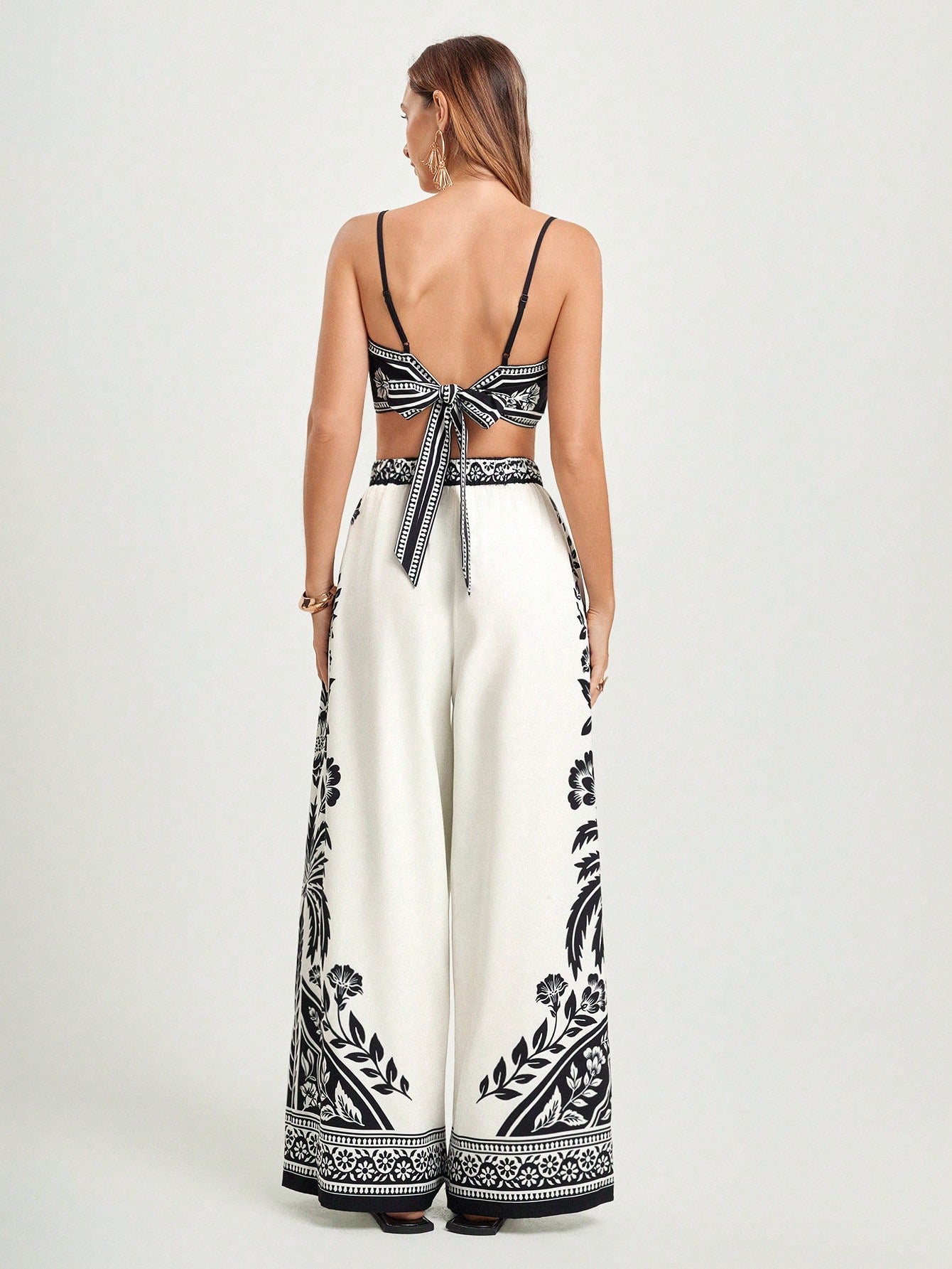 Conjunto Feminino de Duas Peças Boho – Cropped com Amarração e Calça Pantalona | Verão, Férias & Festival