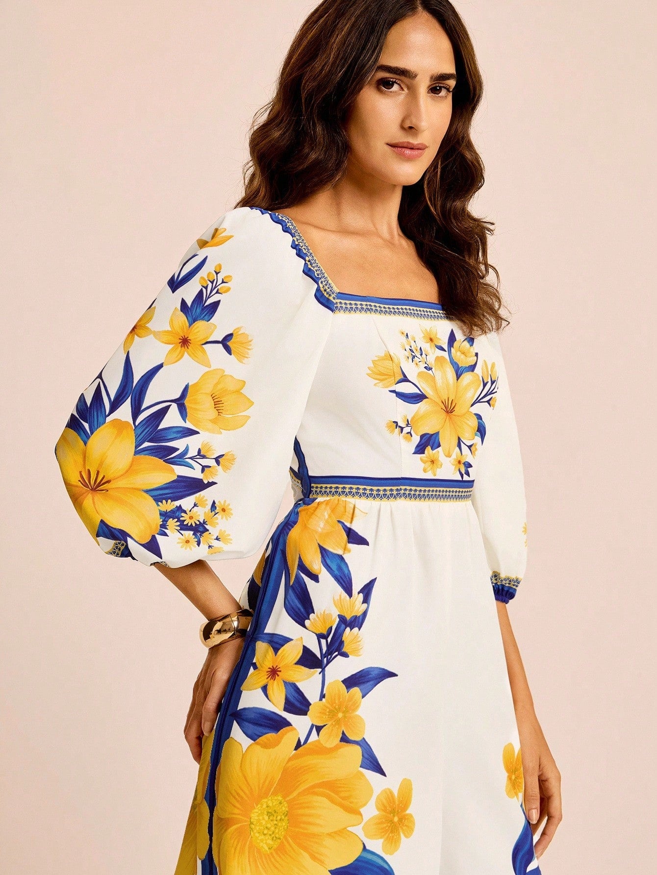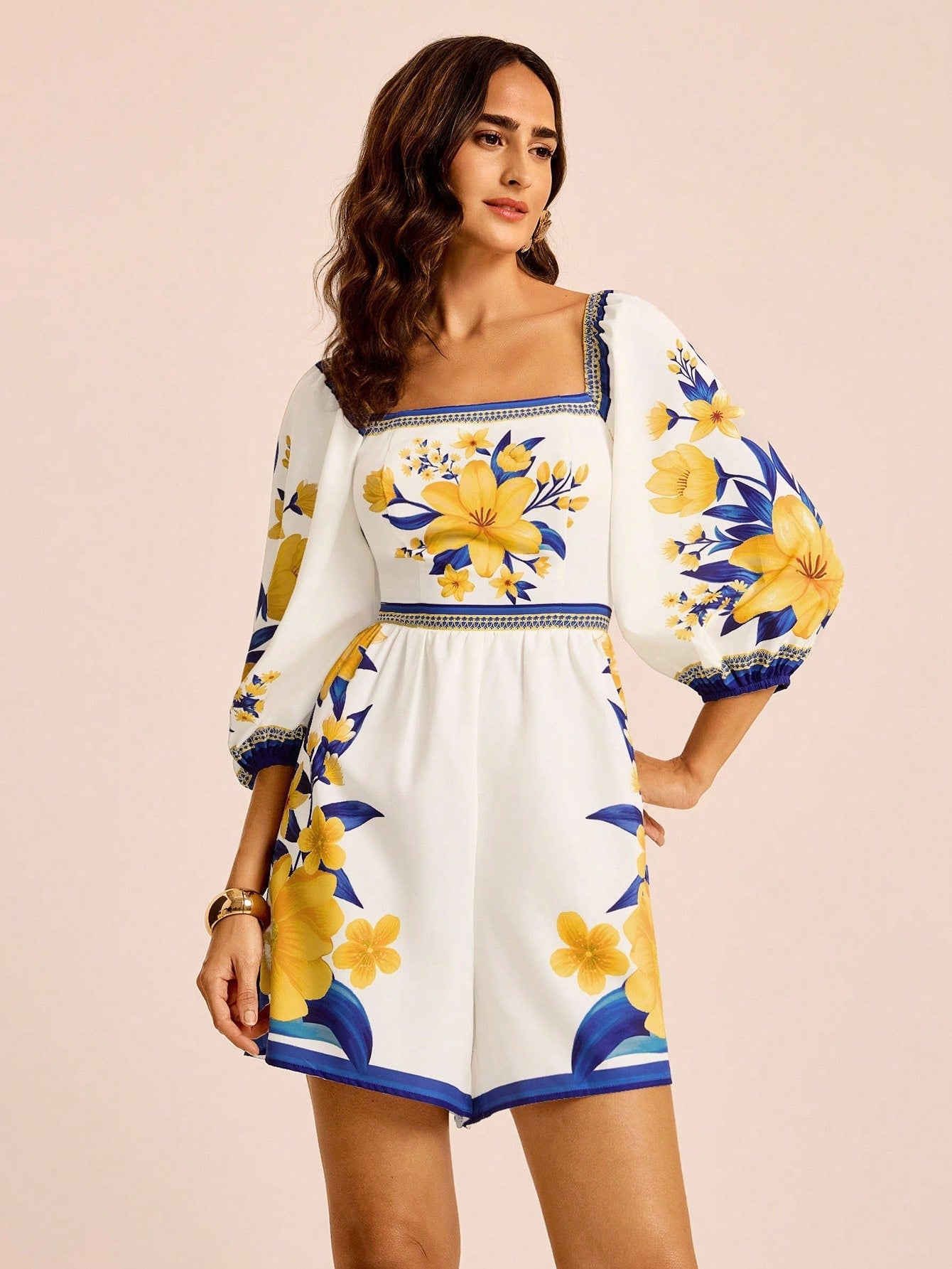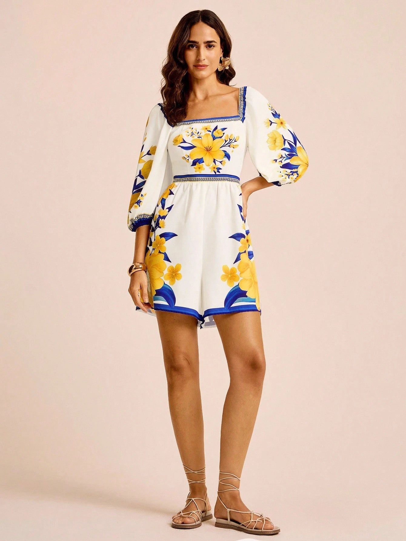 Macacão Feminino Colorido com Estampa Floral – Decote Quadrado e Costas Abertas | Verão & Férias
