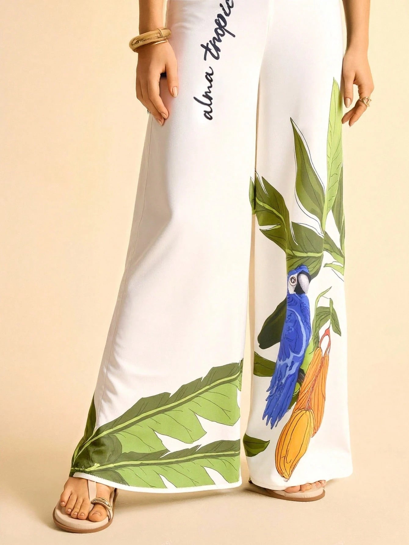 • Estampa tropical de coqueiro e tucano