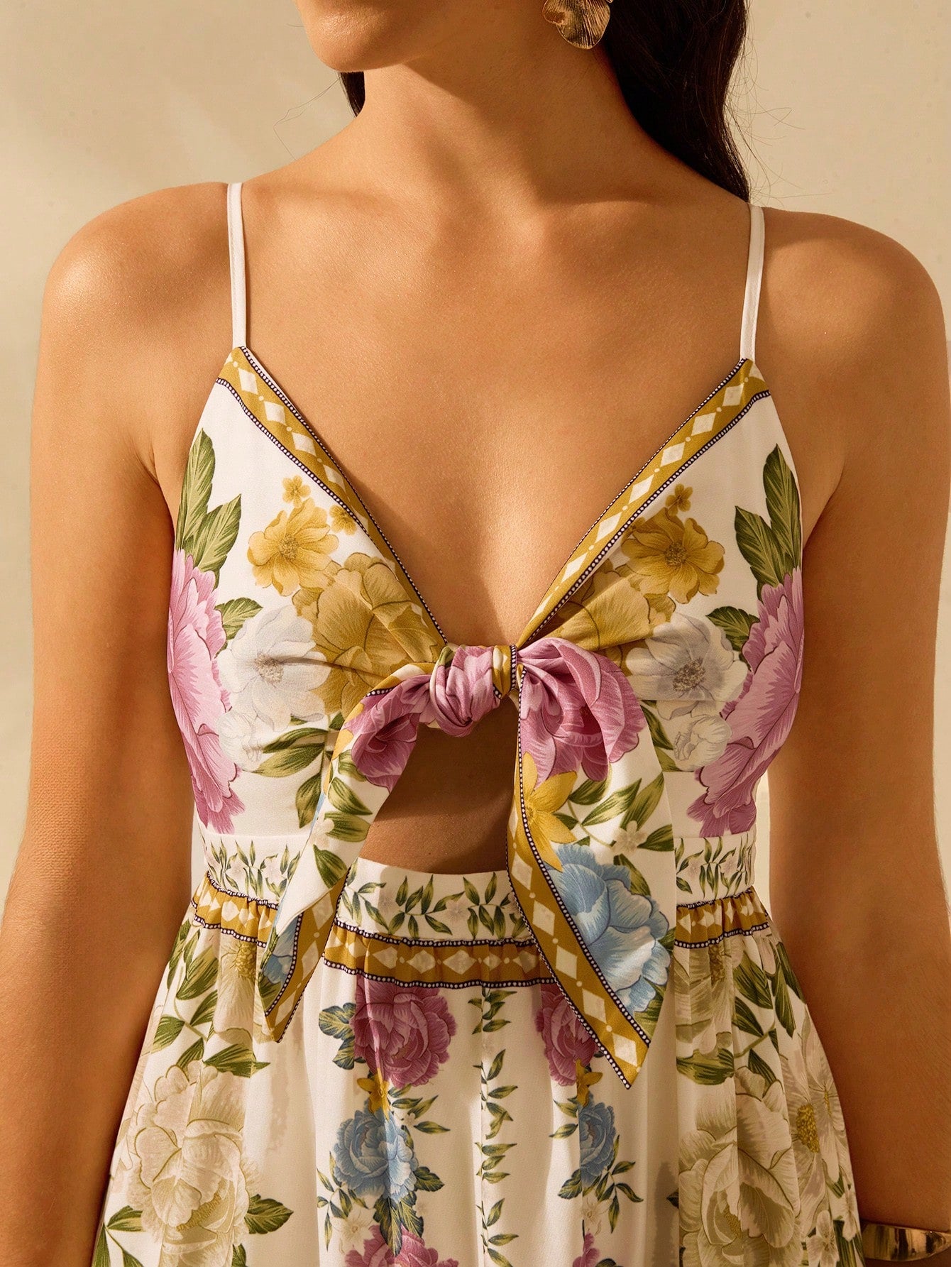 Delicado, leve e cheio de charme, este vestido boêmio é perfeito para curtir o verão com estilo. A estampa floral tropical traz frescor ao visual, enquanto os detalhes amarrados e o design vazado adicionam um toque romântico e moderno.