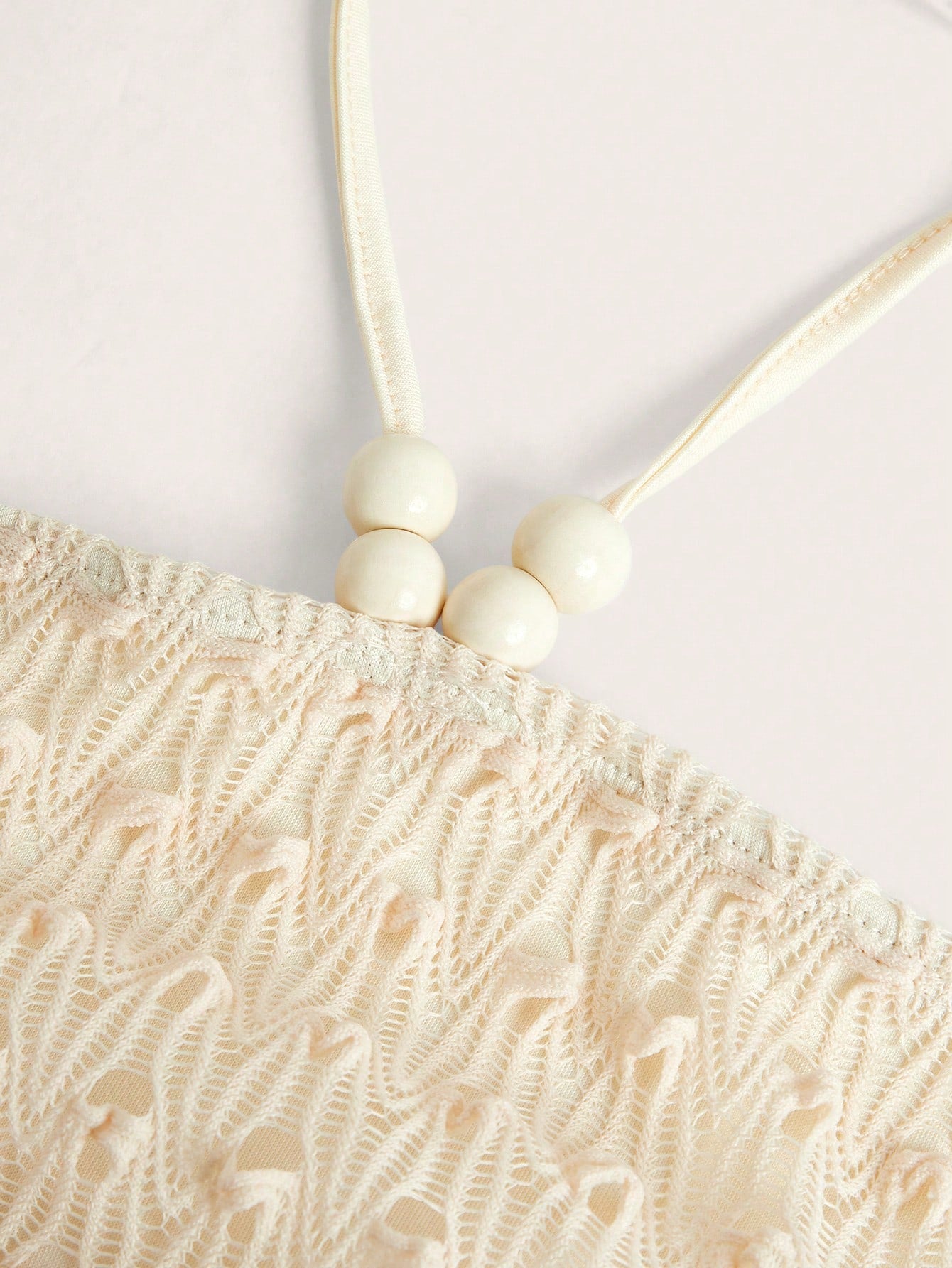 • Decote halter com detalhe em pérolas